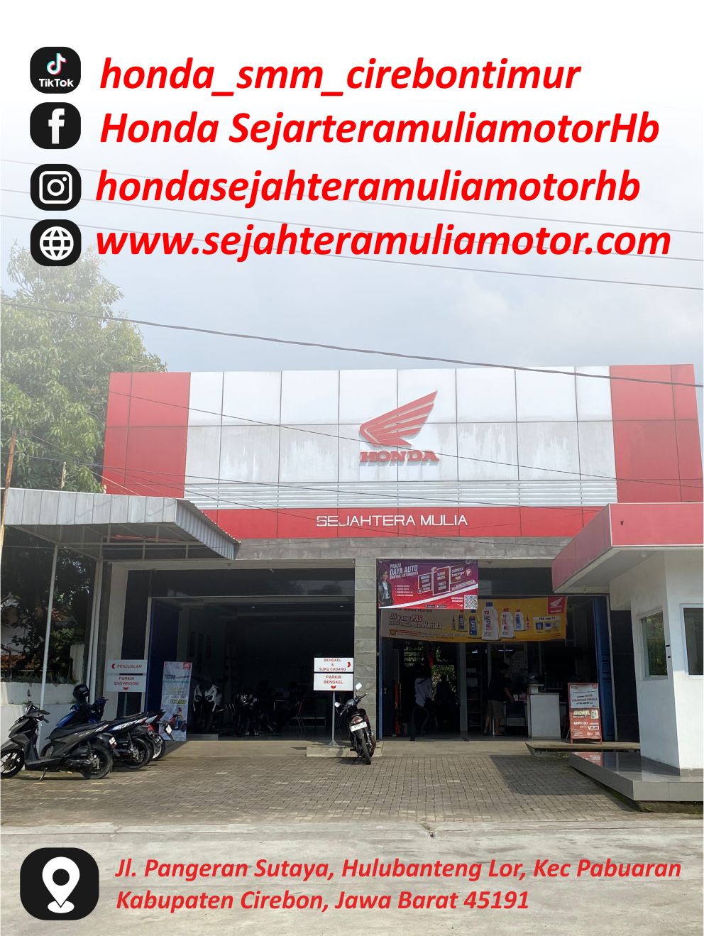 Dapatkan informasi harga motor Honda terbaru meliputi Revo Fit Fi, Beat Sporty Cbs, Revo X, Beat Sporty Cbs Iss Deluxe, Beat Street, Beat Sporty Deluxe Smart Key, Genio Cbs Iss, Genio Cbs Ph Pd, Genio Cbs Bk, Scoopy Prestige Stylish dan lain lain di Daerah Cirebon dan Sekitarnya
